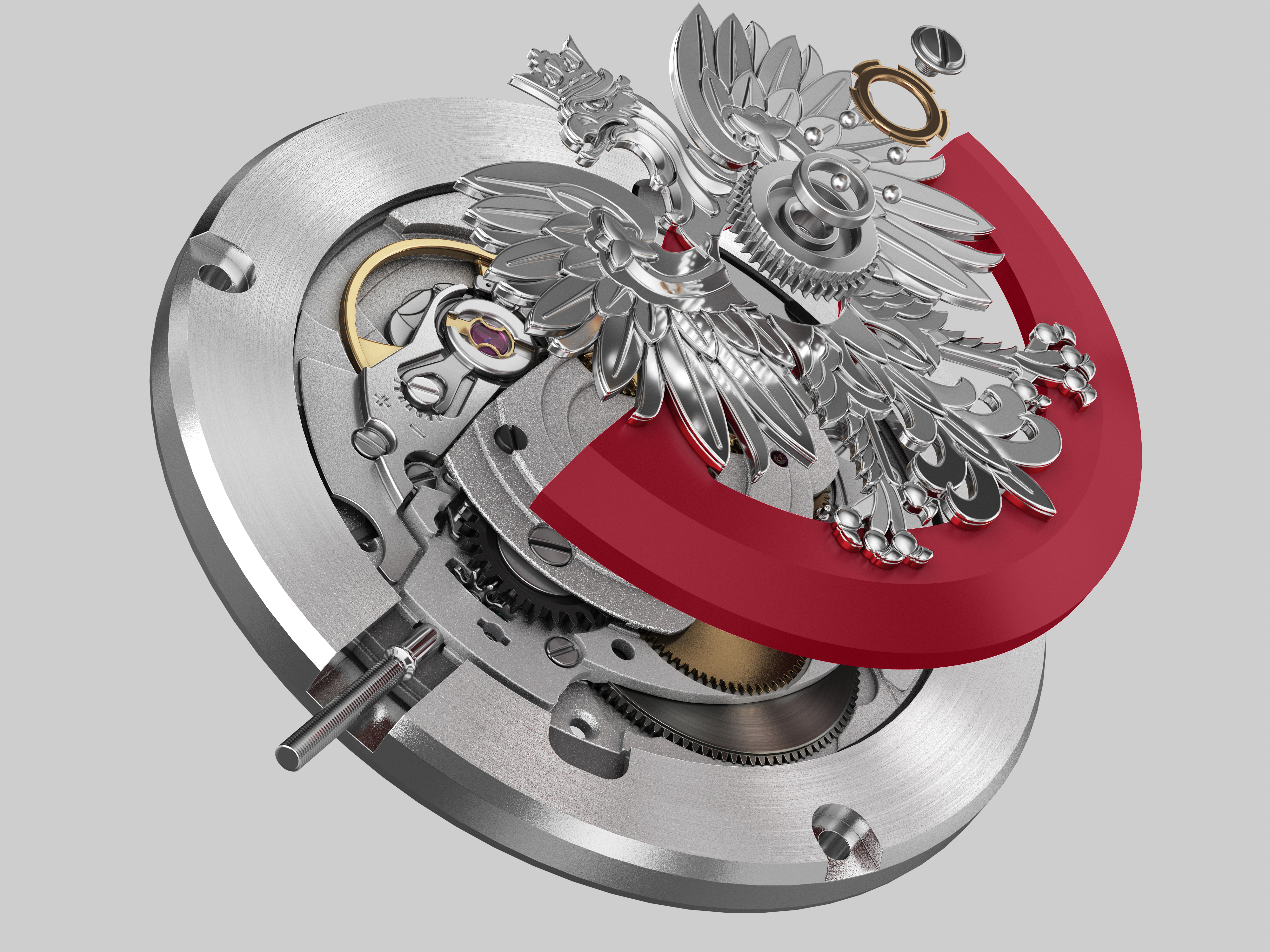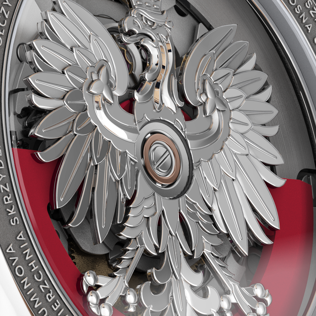 Sercem tego zegarka jest najnowszy kaliber AV-1000 firmy AVIATOR oparty na najbardziej znanym szwajcarskim mechanizmie Sellita SW 240-2. Kaliber AV-1000 to połączenie zaawansowanej technologii i estetyki. Dzięki funkcjonalności mechanizm zawiera wskazania dnia tygodnia i daty. Nie wspominając o tym, że system Incabloc znakomicie chroni mechanizm przed wstrząsami i uderzeniami. Tymczasem ponadwymiarowy i pięknie wykonany rotor podkreśla jakiemu krajowi jest dedykowany zegarek.